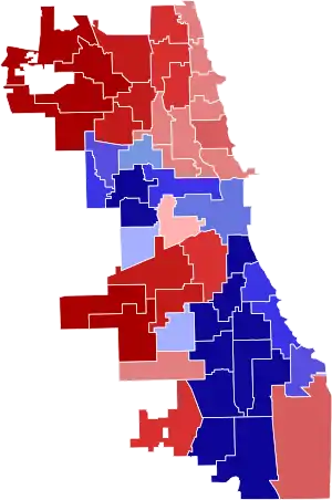 Epton carried a plurality of the vote in 28 of the city's 50 wards, while Washington carried a plurality of the vote in 22 wards.[43][42]