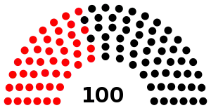 | Party | Vote % | Vote % ± | Seats | Seats ± | ||||||||||