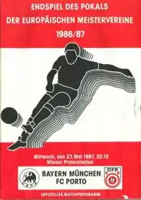 The 1987 European Cup final was a football match held at the Prater Stadium, Vienna, on 27 May 1987, that saw Porto of Portugal defeat Bayern München of West Germany 2–1. Both sides were missing key players: the Portuguese were without their injured striker Fernando Gomes, while the Germans were missing their sweeper, and captain, Klaus Augenthaler, who was suspended, along with striker Roland Wohlfarth and midfield player Hans Dorfner, who were both injured.