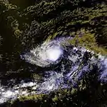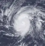 Hurricane/Typhoon Peke caused no damages or deaths.[4][35] However, was also the first tropical cyclone of hurricane strength to cross the dateline since Hurricane Sarah (1967) to cross the dateline at that strength.[35] In addition, Peke was the third tropical cyclone in three years to exist on both sides of the dateline, after 1985's Typhoon Skip[36] and 1986's Typhoon Georgette.[37]
