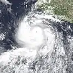 When the storm first posed a threat to Mexico on July 24, the port of Zinuhuatenjo was closed for small craft. Operation classes were suspended in Acapulco. In Manzanillo, the port was officially closed down. The Mexican navy was put on alert for a total distance of 945 mi (1,520 km). The weather service issued navigation warnings for three coastal states and ships were urged to maintain contact with officials.[15] Hurricane Eugene caused extremely heavy rain in coastal parts of Mexico. The highest rain was 20.68 inches at Aquila, Michoacán.[13] The system was responsible for the highest tropical cyclone caused rainfall in five Mexican states.[16] Over 5,000 people were displaced.[17] In Manzanillo alone, at least 60 people were rendered homeless.[18] Most of the damage was the scattering of debris and mud. Six people were injured, and a man in Venustiano Carrazano was killed when a palm tree was blown over.[19] In all, three fatalities were reported.[17] The hurricane destroyed about 15 sq. mi (39 km2) of fruit crop in the country, amounting to more than $2.6 million in damage (1987 USD).[20] Additionally, damage to eight beach houses totaled to $120,000.[21] Total crop damage reached $142 million (1987 USD);[9] In the aftermath of the storm, the navy and army and local government devised a cleanup plan. They worked quickly to restore water and power service, and within a few days the services had been restored for most of the impacted area.[17]