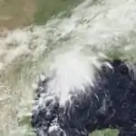The depression drifted eastward under the influence of the dissipating frontal trough and intensified into Tropical Storm Florence, as confirmed by hurricane hunters.[43] The storm turned northward on September 9 and accelerated toward the northern Gulf Coast under the influence of a mid- to upper-level trough. Florence became a hurricane just hours before landfall on the western Mississippi Delta.[5] The storm rapidly weakened over southeastern Louisiana and lost all its deep convection as it passed over the New Orleans area. Florence became a depression on September 10 near Baton Rouge and dissipated the next day over northeast Texas.[43]