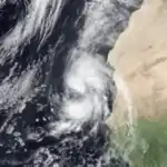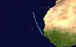 For three days a large trough of low pressure northwest of the system steered it north-northwest towards cooler waters. Moderate to heavy rain was reported along the west coast of Africa, but no damage was reported.[41] The system eventually weakened and merged with the low pressure trough. This unnamed storm was later added to the list of tropical storms in the annual summary for the Atlantic hurricane season.[5]