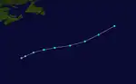 The season's activity was reflected with an accumulated cyclone energy (ACE) rating of 103, which is classified as "near normal".[7][8] ACE is, broadly speaking, a measure of the power of the hurricane multiplied by the length of time it existed, so storms that last a long time, as well as particularly strong hurricanes, have high ACEs. It is only calculated for full advisories on tropical systems at or exceeding 34 knots (39 mph; 63 km/h), which is tropical storm strength.[8]