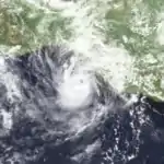 On June 18 a tropical disturbance formed several hundred miles off the coast of Mexico. Ships in the vicinity of the storm, in addition to satellite images, indicated that the disturbance had developed[13] into Tropical Depression Three-E around 1800 UTC. Remaining nearly stationary, the depression gradually strengthened into a tropical storm by June 20, receiving the name Cosme at that time. Early on June 21, Cosme began to track towards the north and intensify.[13][14] Around 1200 UTC, Cosme strengthened into a Category 1 hurricane on the Saffir–Simpson scale.[15] Several hours later, Cosme reached its peak intensity.[13] Late on June 21, the center of the hurricane made landfall on the Mexican coast, just east of Acapulco with winds of 80 mph (130 km/h).[15] The low associated with the former hurricane was last identified near Brownsville, Texas.[13]