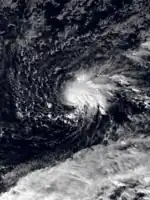 Gil formed from an area of disturbed weather located near the Mexico–Guatemala border developed a circulation in the Gulf of Tehuantepec and then dissipated. On July 30, the disturbance redeveloped a circulation and then convection. It paralleled the coast of Mexico and headed in a northwesterly direction.[36] The low continued to organize, and was upgraded into a tropical depression. Initially, there was some uncertain in the storms future path, and there was a possibility of the system recurving towards the coast.[37] It strengthened into a tropical storm on July 31.[36] The system continued to become better organized, with further intensification foretasted because the low was located over very warm waters;[38] and was upgraded into a hurricane that same day. Shortly thereafter, the cyclone developed an eye.[39] Gil was a hurricane for only about 30 hours,[36] and it began to encounter dry air.[40] By the August 1, Gil had lost hurricane intensity. It was downgraded to a tropical depression the next day. The cyclone dissipated on August 5.[36]