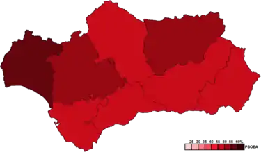 Spanish Socialist Workers' Party of Andalusia (PSOE–A) 1,368,57649.60+2.56 62+2