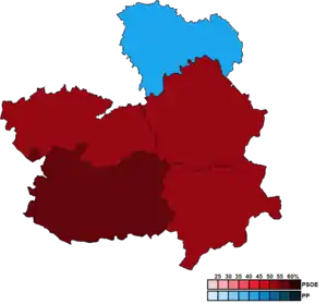 ![]() Constituency results map for the Cortes of Castilla–La Mancha | |||||||||||||||||||||||||||||||||||||||||||||