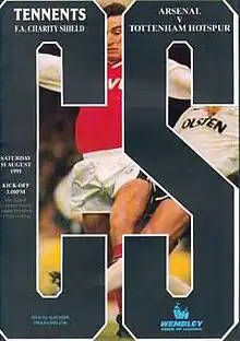 The 1991 FA Charity Shield (also known as the Tennent's FA Charity Shield for sponsorship reasons) was the 69th FA Charity Shield, the annual football match contested by the reigning champions of the Football League First Division and the holders of the FA Cup. It was held at Wembley Stadium, on 10 August 1991. The game was played between Arsenal, champions of the 1990–91 Football League and Tottenham Hotspur, who beat Nottingham Forest to win the 1991 FA Cup Final. This was Arsenal's twelfth Charity Shield appearance and Tottenham Hotspur's sixth.