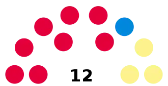 | Party | Seats | Gains | Losses | Net gain/loss | Seats % | Votes % | Votes | +/− | |