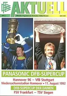 The match was played at the Niedersachsenstadion in Hanover, and contested by league champions VfB Stuttgart and cup winners Hannover 96. Stuttgart won the match 3–1 for their first title.[1]