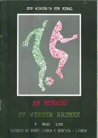 The 1992 European Cup Winners' Cup Final was a football match contested between Werder Bremen of Germany (who qualified for the tournament through the West German berth) and Monaco of France. It was the final match of the 1991–92 European Cup Winners' Cup and the 32nd European Cup Winners' Cup final. The final was held at Estádio da Luz in Lisbon. The attendance of 16,000 in a stadium which, at the time, had a capacity of around 130,000 meant that this was one of the most sparsely-attended UEFA finals of all time, both in actual and relative terms. Bremen won the match 2–0 thanks to goals of Klaus Allofs and Wynton Rufer.