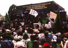 At the beginning of the PPP's campaign in Jakarta on 10 May, senior party official Djufrie Asmoredjo again stated that the PPP would nominate Suharto for the presidency, with General Try Sutrisno as his deputy. On the same day, PPP chairman Ismail Hasan Metareum said that the party would work to improve the lot of the disadvantaged by building a pro-people economy and bringing about social justice.[14] On 29 May, he said the PPP must win a majority of the vote in Jakarta, and reminded supporters to vote for the party.[15] Ending the party's campaign in Semarang on 3 June, secretary general Matori Abdul Djalil read a five-part political statement calling on people to use their vote and saying that Pancasila was the only basis for society.[16]