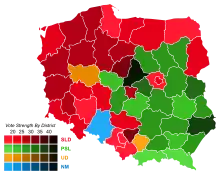 Results of the Sejm election, showing vote strength by electoral district.