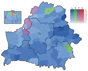 Presidential elections were held in Belarus on 23 June 1994, with a second round on 10 July.[1] They were the first national elections held in Belarus since the country seceded from the Soviet Union three years earlier. The result was a victory for Alexander Lukashenko, who received 80.6% of the vote in the second round. Voter turnout was 79.0% in the first round and 70.6% in the second.[2]
