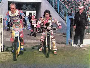 ![]() Per Jonsson (left) topped the league averages riding for Toruń | |