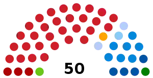 The Legislative Assembly of Emilia-Romagna (Assemblea Legislativa dell'Emilia-Romagna) is composed of 50 members. 40 councillors are elected in provincial constituencies by proportional representation using the largest remainder method with a Droop quota and open lists, while 10 councillors (elected in bloc) come from a "regional list", including the President-elect. One seat is reserved for the candidate who comes second. If a coalition wins more than 50% of the total seats in the Council with PR, only 5 candidates from the regional list will be chosen and the number of those elected in provincial constituencies will be 45. If the winning coalition receives less than 40% of votes special seats are added to the Council to ensure a large majority for the President's coalition.[1]