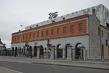 The selected venue was the Point Theatre, a concert and events venue located amongst the Dublin Docklands which had originally been built as a train depot to serve the nearby port. Opened as a music venue in 1988, it was closed for redevelopment and expansion in 2008 and is now known as the 3Arena.[4] Having previously hosted the 1994 contest, Dublin became the first city to host two consecutive Eurovision Song Contests, with the Point Theatre also serving as the host venue for the second year in a row.[2][5]