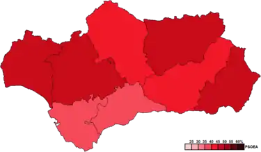 ![]() Constituency results map for the Parliament of Andalusia | ||||||||||||||||||||||||||||||||||||||||||||||||||||||||||||||||||||||||||||||||||