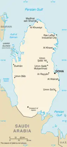 ![]() A CIA WFB map of Qatar, not showing the Halul Island. | |||||||