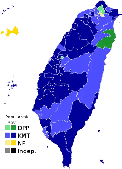 | Democratic Progressive Party | 3,121,423 | 29.93 | 99 | +33 | |