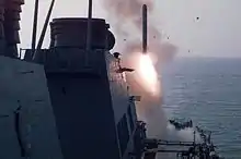 ![]() USS Laboon launches Tomahawk cruise missiles at Iraqi air defense targets, 3 September 1996. | |||||||