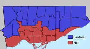 The election resulted in a showdown between Barbara Hall, the one-term mayor of the old city of Toronto, and Mel Lastman, who had been mayor of the former Toronto suburb of North York for 25 years.