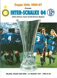 The 1997 UEFA Cup Final was a two-legged football match contested between Schalke 04 of Germany and Inter Milan of Italy. The tie was a tight affair, with each leg being won 1–0 by the home-team. After 210 minutes of football, the tie was eventually settled on penalties, with Schalke winning 4–1 at the Stadio Giuseppe Meazza. It was to be the last UEFA Cup final to be played over two legs, future finals being one-off games at a neutral ground.