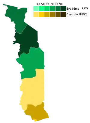 | Gnassingbé Eyadéma | Rally of the Togolese People | 811,837 | 52.08 | |