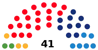 Last election 16 seats, 38.4% 13 seats, 30.6% 7 seats, 16.6%