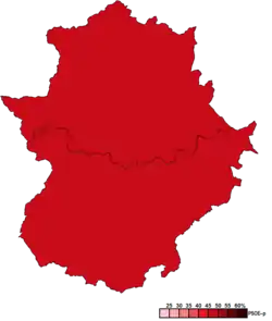 ![]() Constituency results map for the Assembly of Extremadura | |||||||||||||||||||||||||||||||||||||||||||||