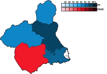 ![]() Constituency results map for the Regional Assembly of Murcia | |||||||||||||||||||||||||||||||||||||||||||||