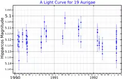 - Chistyakov, Yu. N.; Sokolov, N. A. (November 1999), "On the Variability of 19 Aurigae as Observed by the Hipparcos Satellite", Information Bulletin on Variable Stars, 4808: 1, Bibcode:1999IBVS.4808....1C.