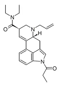 1P-AL-LAD is a derivative of lysergic acid diethylamide (LSD) which has psychedelic effects and has been sold as a designer drug. It is believed to act as a prodrug for AL-LAD and produces a head-twitch response in animal studies.[1]