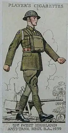 However, this was short-lived: by the late 1930s a need for specialist anti-tank (A/T) artillery had been recognised, and on 28 November 1938 the regiment (as RA brigades were termed from that year onwards) became the first such unit in the TA as 51st (West Highland) Anti-Tank Regiment.[8][14][31][32]