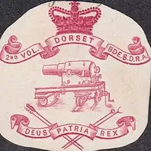 The enthusiasm for the Volunteer movement following an invasion scare in 1859 saw the creation of many Rifle and Artillery Volunteer Corps composed of part-time soldiers eager to supplement the Regular British Army in time of need.[1][2][3] Four Artillery Volunteer Corps (AVCs) were quickly formed in Dorsetshire:[4][5][6][7]