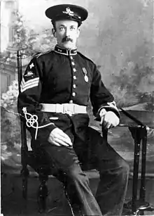 When the Volunteers were subsumed into the new Territorial Force in 1908 under the Haldane Reforms,[10] the 1st Fifeshire RGA (V) (except No 7 Company) was split between three units: the Highland (Fifeshire) RGA, the Fifeshire Battery of the II Highland Brigade, Royal Field Artillery at Leven, and (together with the 1st Forfarshire RGA (V)) the North Scottish RGA, later renamed the Forth RGA, a 'defended ports' unit based at Edinburgh.[7][11][12][13][14]