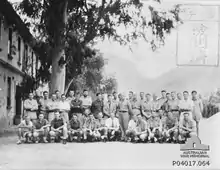 Meanwhile, the sections of the company that had not been with the main group at Kavieng managed to avoid capture by the Japanese. Working with the coastwatchers, they reported Japanese movements and carried out demolitions until they were later evacuated or escaped from the islands between April and May 1942.[5][8] A reinforcement platoon had been trained in Australia while the company was deployed and after completing its training sailed on the Macdui, arriving at Port Moresby on 10 March 1942. Following their arrival, the platoon was designated the Independent Platoon Port Moresby and initially used for local defence purposes. It was later re-designated as Detachment 1 Independent Company.[9][2] In April 1942, under the command of Captain Roy Howard,[10] it was moved to Kudjeru, in New Guinea, to guard against possible Japanese movement south of Wau along the Bulldog Track.[8] In the process they became the first Australian Army unit to cross the Owen Stanley Range.[10][9] In June, a section fought alongside the 2/5th Independent Company as part of Kanga Force where they participated in a major raid on the Japanese at Salamaua.[8] Eventually, however, as a result of the losses suffered during the 1942 campaigns it was decided that the company would be disbanded and as the survivors were transferred to other commando units – with the majority of those in Port Moresby being transferred to the 2/5th –No. 1 Independent Company was never raised again.[5][11]