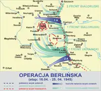 By March 1944 the division had been expanded into the basis of the 1st Polish Army Corps, part of the Western Front.[6] As part of the 1st Polish Army Corps, the division was in the vicinity of Zhytomyr and Berdichev. According to a Directive of April 29, 1944, it was part of the structure of the Belarusian Front. In the following days with the troops, Division marched in a westerly direction, and on July 23, 1944 crossed the river Bug. After a march lasting from July 15 to 27, 1944, the division reached the boundary of the Vistula and on August 2, 1944 made an attempt to capture a foothold in the Deblin region.