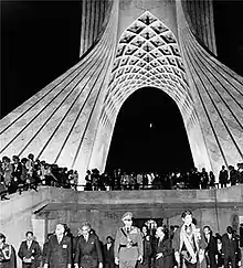 The Celebration of the 2,500th Anniversary of the Founding of the Persian Empire[1] (Persian: جشنهای دوهزار و پانصدمین سال بنیانگذاری شاهنشاهی ایران) was a national event in Iran that consisted of an elaborate set of grand festivities during October 1971 to celebrate the founding of the ancient Achaemenid Empire by Cyrus the Great.[2][3] The intent of the celebration was to highlight Iran's ancient civilization and history as well as to showcase its contemporary advances under Shah Mohammad Reza Pahlavi.[4] The celebrations highlighted pre-Islamic origins of the country while promoting Cyrus the Great as a national hero.[5]