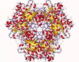 ![]() 2-dehydro-3-deoxyglucarate aldolase hexamer, Staphylococcus aureus | |||||||||