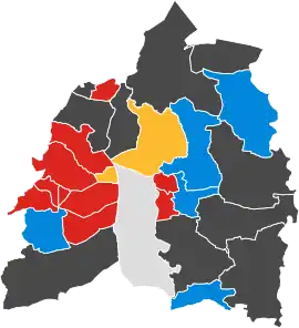 ![]() No election Colours denote the winning party, as shown in the main table of results. | |||||||||||||||||||||