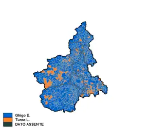 Enzo Ghigo (Forza Italia) was re-elected for the second time in a row President, defeating Livia Turco (Democrats of the Left). His re-election resulted in a landslide, as this time he was supported also by the Northern League.