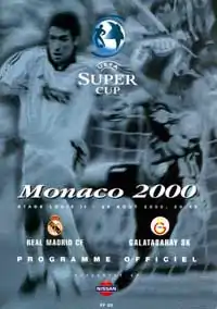 The 2000 UEFA Super Cup was a football match played on 25 August 2000 between Real Madrid of Spain and Galatasaray of Turkey. Real Madrid qualified by beating Valencia in the 2000 UEFA Champions League Final, while Galatasaray had made it to the Super Cup after beating Arsenal in the 2000 UEFA Cup Final. Galatasaray won the match 2–1, both goals scored by Mário Jardel, the latter a golden goal.[4]