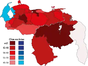 ![]() Results by state. Red denotes states won by Chávez, Blue denotes states won by Arias Cárdenas. | |||||||||||||||||||||||