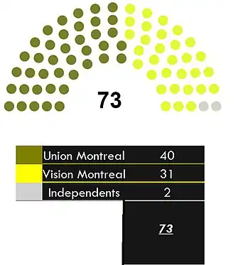 74 seats in Montreal City Council 38 seats needed for a majority | ||||||||||||||||||||||||||||||||||