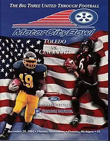 The 2001 Motor City Bowl was a post-season college football bowl game part of 2001–02 NCAA football bowl games in which the Toledo Rockets of the MAC defeated the Cincinnati Bearcats of the Conference USA 23–16. It was played on December 29, 2001 at the Pontiac Silverdome in Pontiac, Michigan. This was the last Bowl game that was played in the Pontiac Silverdome.