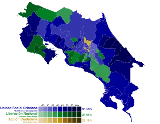While PUSC won the presidential election and the majority in Congress, PLN became the primal opposition force in Parliament. Centre-left PAC with a progressive proposal seem to had gravely affected traditional third forces at the left of the spectrum like Democratic Force that fail to win any seat on that election even when for some years was Costa Rica's main third party.[7] Right-wing Libertarian Movement also increases its representation from one to six deputies[7] while conservative[8] Costa Rican Renewal Party won one seat as usual.[7]