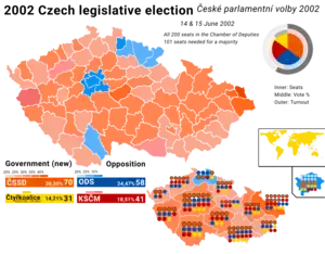 Parliamentary elections were held in the Czech Republic on 14 and 15 June 2002.[1] The result was a victory for the Czech Social Democratic Party, which won 70 of the 200 seats. Voter turnout was 57.9%.[2]