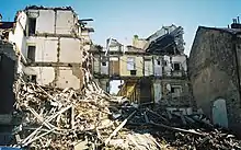 Germany was the hardest hit, with over two-thirds of the flood's total losses.[23] The 10 years of renovation work that had been carried out since reunification in 1990 in the town of Grimma, in the former East Germany, were said to have been destroyed in one night.[24]